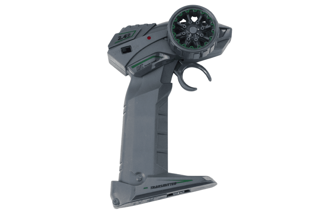 Model wyposażony jest w nowoczesny pilot zdalnego sterowania 2.4G, który zapewnia stabilne połączenie bez zakłóceń. Umożliwia jazdę do przodu, do tyłu, skręty w lewo i w prawo oraz płynne hamowanie. Pojazd doskonale radzi sobie zarówno na gładkich, jak i bardziej wymagających nawierzchniach.
