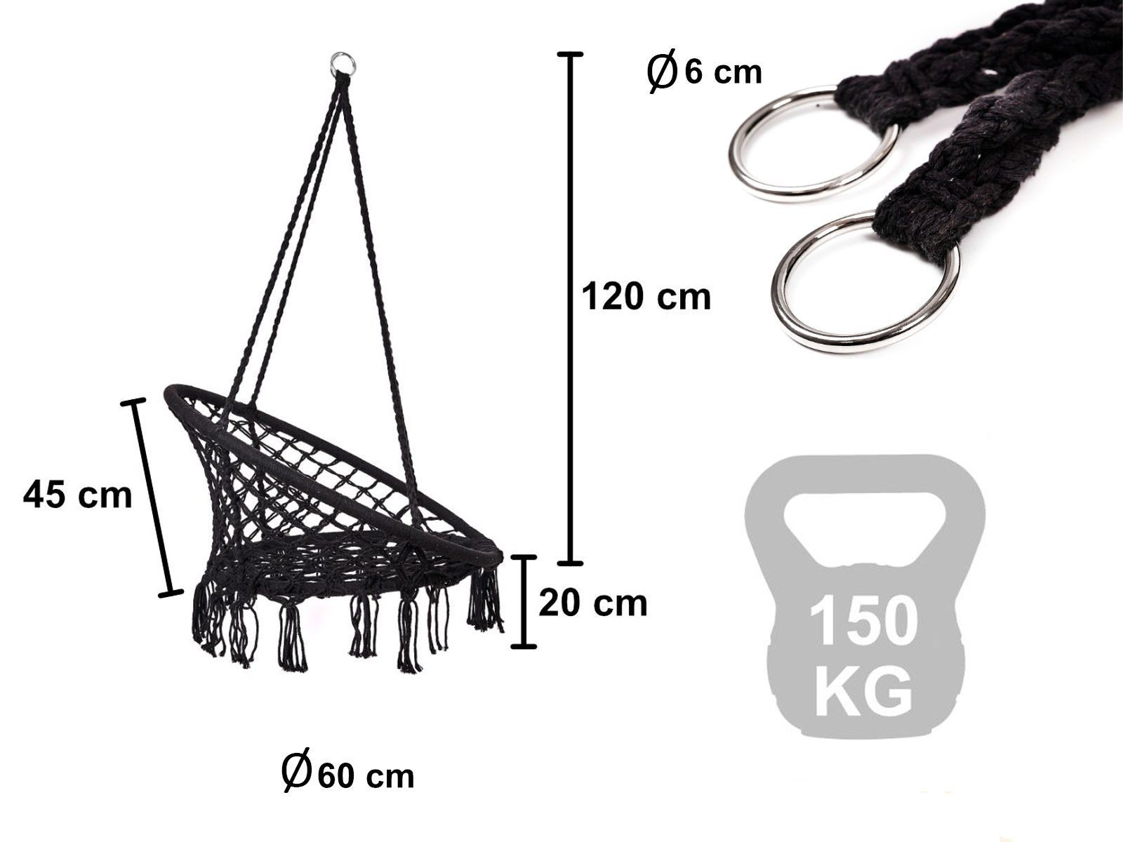 - Tworzywo: bawełniane liny, metalowy stelaż